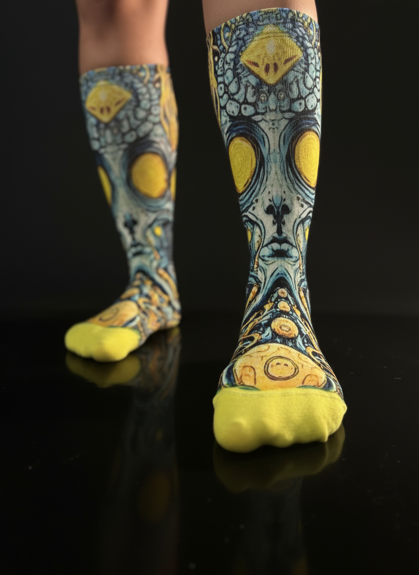 This pair features golden eyes, sacred geometry, and an otherworldly presence that feels both ancient and futuristic.