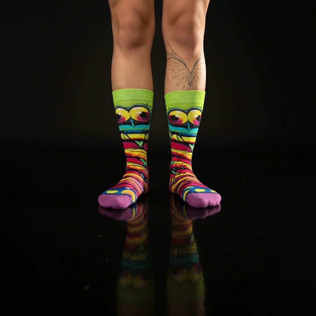 Crafted from 100% organic bamboo, this unisex pair is breathable, eco-friendly, and full of freaky fun.