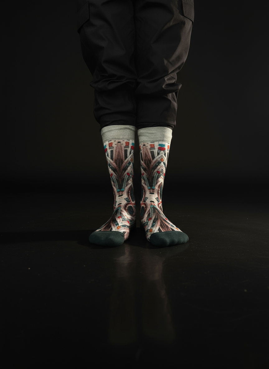 A vivid fusion of ancient Turkish patterns and bold modern aesthetics, this sock brings cultural elegance to contemporary style.